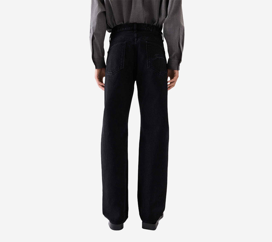 Classic straight-leg jeans from Jacquemus embody the brand’s signature French minimalism and sophistication. Crafted from premium cotton denim in a distinctive light indigo wash, they feature a mid-rise waist with a secure zip fly and metal button for a comfortable fit. The straight-leg silhouette flatters the figure and pairs effortlessly with T-shirts, shirts, or jackets for looks ranging from casual and dynamic to refined and relaxed.