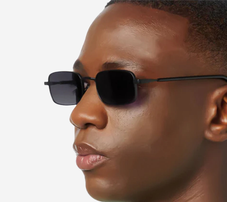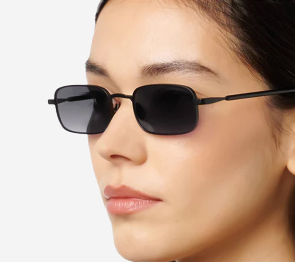 Handmade metal sunglasses with matte black stainless steel frame and acetate temple end-tips in shiny black color. Gradient grey nylon lenses with anti-reflective inside coating – 100% UVA / UVB protection - Cat.3.