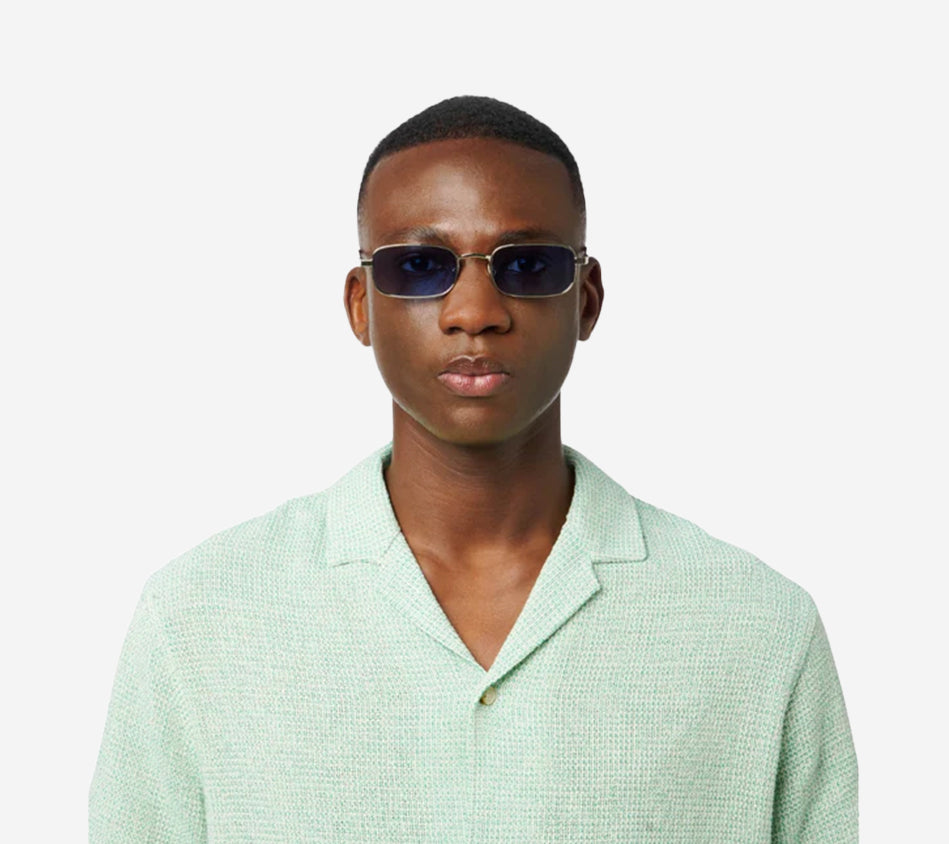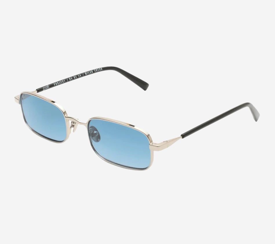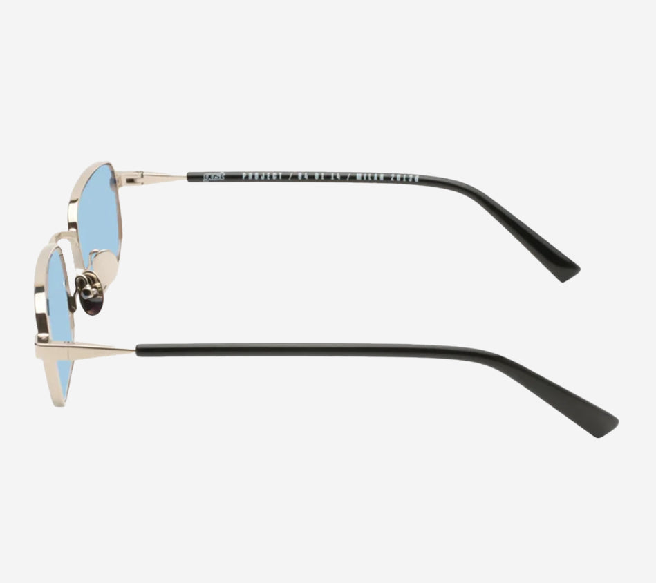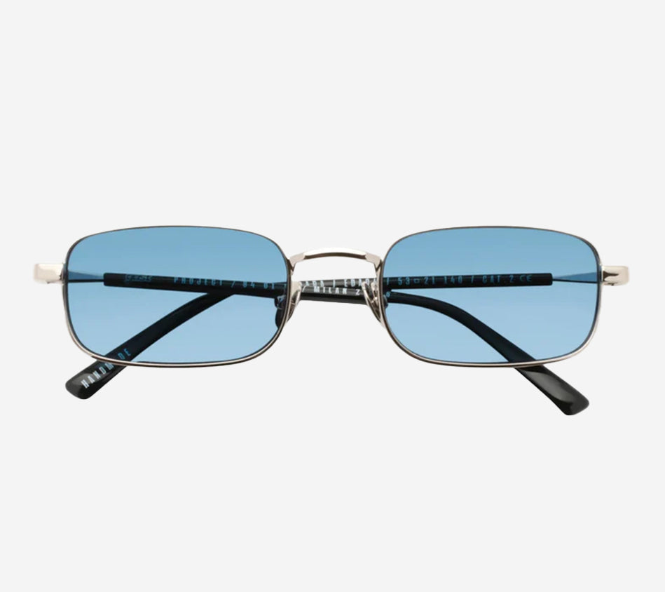 Handmade metal sunglasses with shiny silver stainless steel frame and acetate temple end-tips in black color. Gradient blue nylon lenses with anti-reflective inside coating – 100% UVA / UVB protection - Cat.2.
