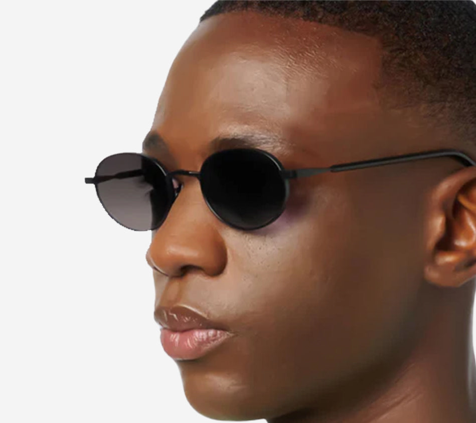 Handmade sunglasses with matte black stainless steel frame and acetate temple end-tips in black color. Gradient grey nylon lenses with anti-reflective inside coating – 100% UVA / UVB protection - Cat.3 Premium hard case and microfiber cleaning cloth.