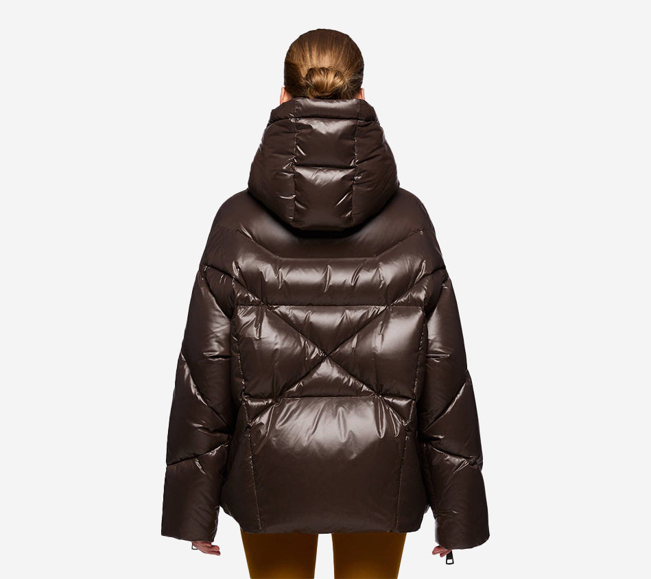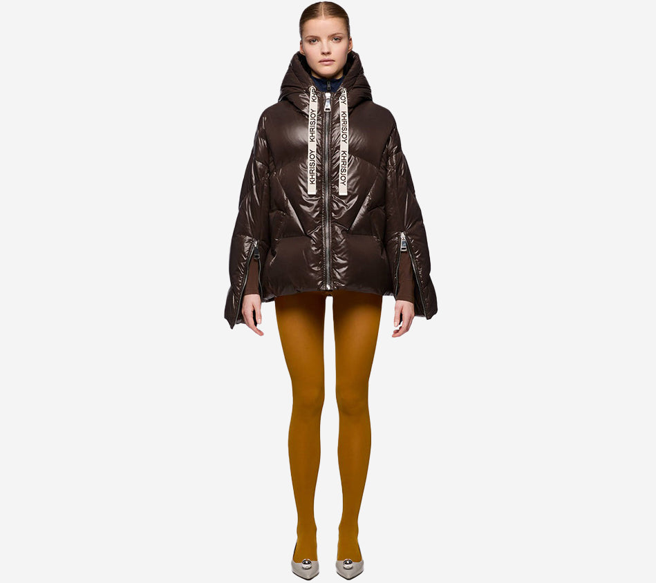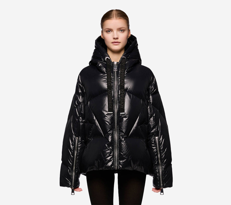 Symbol of the Khrisjoy DNA, the Iconic Milano down jacket is made from shiny technical fabric and padded with white goose down and feathers. Characterized by the iconic X quilting on the back, this model transcends seasons and trends, featuring an oversized silhouette. A distinctive Khrisjoy feature, the classic branded strings on the maxi hood. The style is completed with a front maxi zipper, zippers on the sleeves, and two side welt pockets.