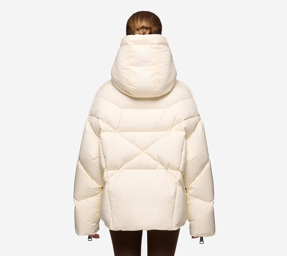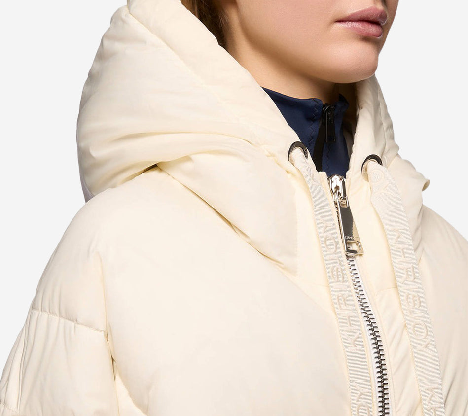 Symbol of the Khrisjoy DNA, the Iconic Milano down jacket is made from matte technical fabric and padded with white goose down and feathers. Characterized by the iconic X quilting on the back, this model transcends seasons and trends, featuring an oversized silhouette. A distinctive Khrisjoy feature, the classic branded strings on the maxi hood. The style is completed with a front maxi zipper, zippers on the sleeves, and two side welt pockets.